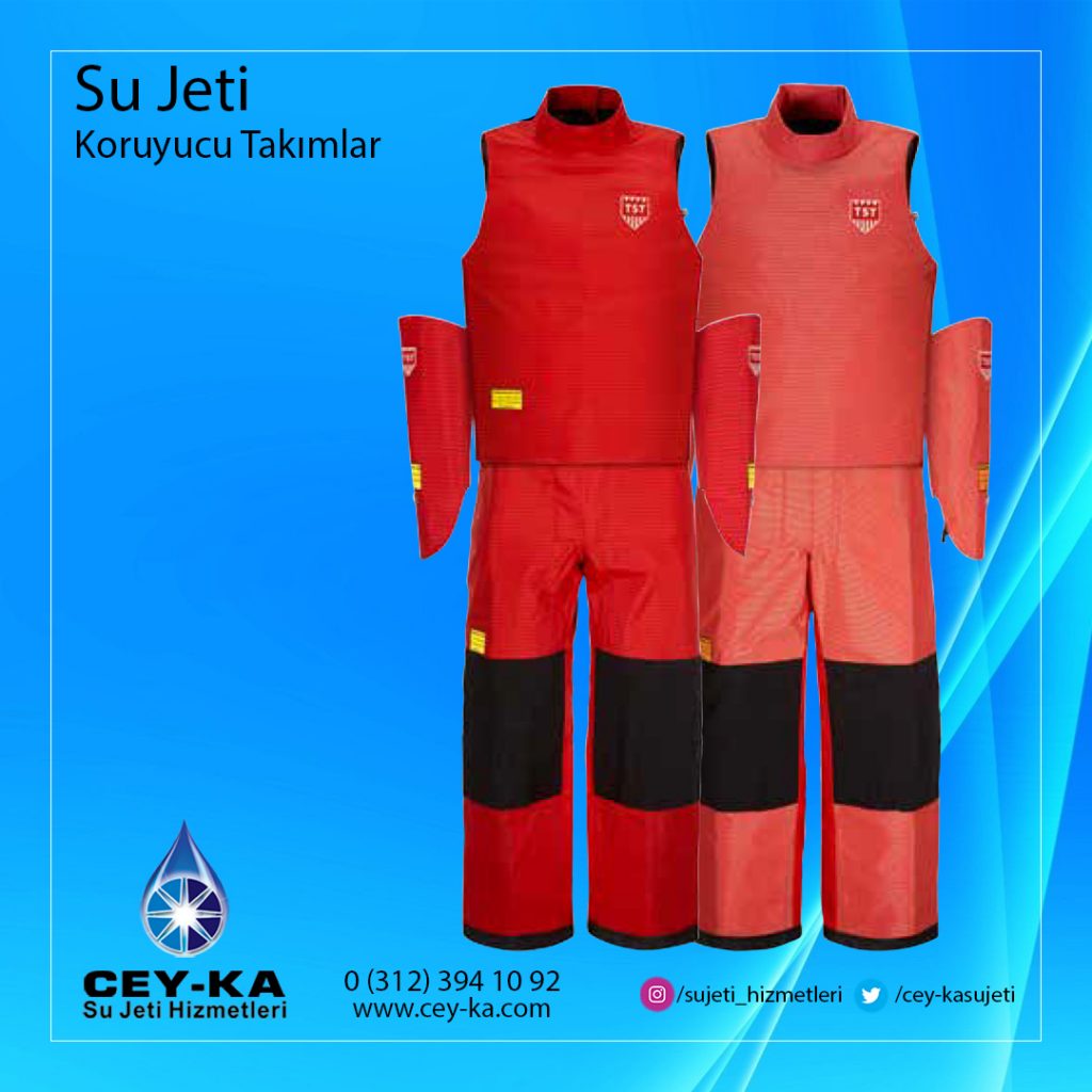 Su Jeti Makineleri koruyucu ekipmanları, uzmanın yüksek basınçlı suya maruz kalması durumuna karşı anlık koruma sağlar.